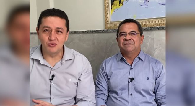 Glêdson Bezerra ao lado do secretário de administração, Hélio Alves, durante anúncio de convocação. Foto: Reprodução Redes Sociais