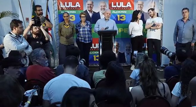 À noite, o candidato do PT participou de uma live com o deputado federal André Janones (Avante-MG) e disse que, caso eleito, o salário mínimo será reajustado com base no crescimento da economia. “No nosso governo o salário mínimo vai ser aumentado de acordo com o crescimento da economia. Se a economia crescer 10%, ele [o salário] vai ter 10% [de aumento]. Não basta o PIB [Produto Interno Bruto] crescer se ele não é distribuído. Nós temos que garantir aos aposentados, pensionistas, aos que recebem BPC [Benefício de Prestação Continuada] que eles têm que ter o aumento real”.