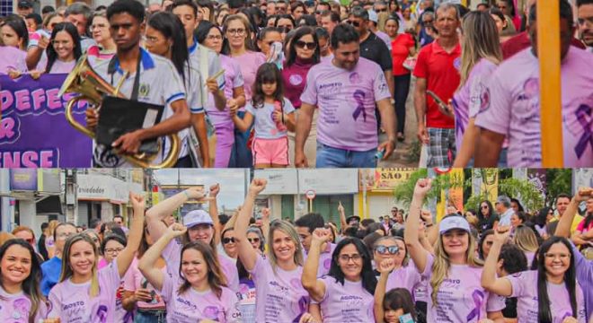 Centenas de pessoas saíram pelas ruas de Missão Velha, nesse domingo (27), em mobilização contra a violência de gênero, durante a 1ª Caminhada Contra a Violência e o Feminicídio – evento em alusão ao Agosto Lilás, mês de conscientização no combate à violência contra a mulher.