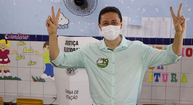 O então candidato Glêdson Bezerra, do Podemos, após votar no pleito que o elegeu, em 2020 (Foto: Josimar Segundo)