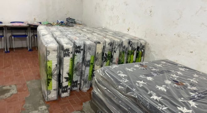 A Prefeitura também está providenciando água potável, bem como produtos de higiene pessoal e alimentação. Colchões foram distribuídos para as famílias no local do abrigo.