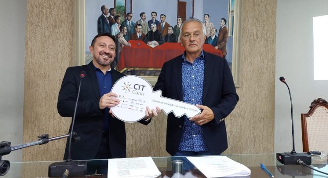 Em ato simbólico realizado nesta terça-feira (17), o vice-prefeito de Juazeiro do Norte, Giovanni Sampaio (PSD), entregou as chaves do antigo prédio da Câmara Municipal, localizado na Rua do Cruzeiro, ao reitor da Universidade Regional do Cariri (Urca), Francisco do Ó de Lima Júnior. O espaço abrigará o Centro de Inovação Tecnológica do Cariri (CIT-Cariri), que tem o projeto encabeçado pela Urca.