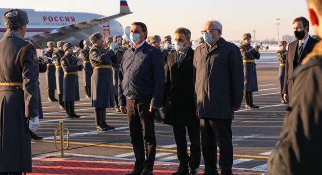 O presidente Jair Bolsonaro desembarcou hoje (15), em Moscou, capital da Rússia, para um encontro com Vladimir Putin, mandatário russo. O desembarque ocorre durante a tarde na Rússia, devido ao fuso de 6 horas a mais. Bolsonaro chega pouco depois de a Rússia anunciar a retirada de parte das tropas militares da fronteira da Ucrânia.