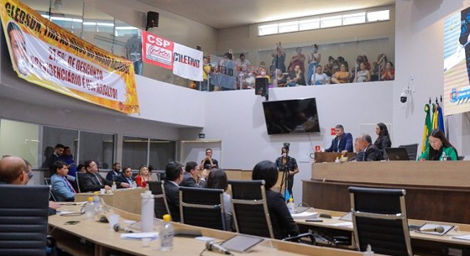 Servidores municipais de Juazeiro do Norte realizaram uma nova manifestação contra a reforma da previdência proposta pelo prefeito Glêdson Bezerra (Podemos). A categoria lotou as galerias da Câmara Municipal durante a sessão ordinária dessa terça-feira (20). A proposta tramita desde o ano passado na Câmara, mas segue emperrada nas comissões da Casa.
