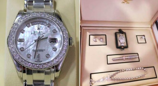 Em 2019, durante uma viagem do ex-presidente Jair Bolsonaro (PL) a Doha, no Catar, e a Riade, na Arábia Saudita, o político recebeu um presente dos sauditas, que ficou com ele mesmo após ter deixado a presidência da República. Dessa vez, uma caixa com um relógio Rolex , uma caneta Chopard , abotoaduras, anel e uma espécie de rosário árabe. O conjunto, de ouro branco e diamantes, é avaliado em mais de R$ 500 mil. As informações são do jornal O Estado de São Paulo.