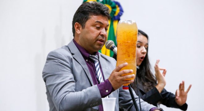 O vereador William Bazílio (PMN) levou, nesta terça-feira (18), ao Plenário da Câmara Municipal de Juazeiro do Norte, amostras da água que abastecem o Sítio Carás do Umari, na zona rural do município.
