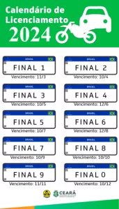 Fique atento ao calendário completo do Licenciamento 2024 e ao vencimento conforme o final da placa do seu veículo: