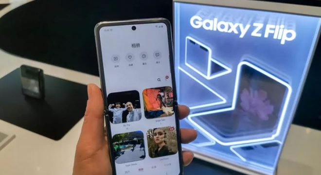 Modelo do Samsung Galaxy Z Flip, um smartphone dobrável baseado no Android Foto: Reuters