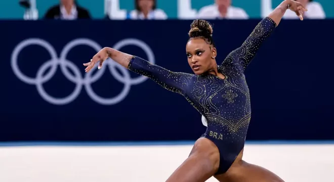 Principal esperança de medalhas para o Brasil na ginástica artística, Rebeca Andrade volta a competir nesta quinta-feira (1), às 13h15, para a disputa do individual geral feminino. Andrade abriu com uma medalha inédita na sua sequência de finais nas Olimpíadas de Paris. Na terça-feira, a ginasta liderou o Brasil ao bronze histórico por equipes da ginástica artística.