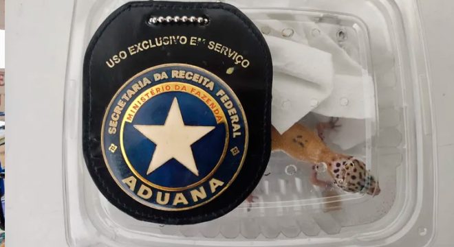 A Receita Federal resgatou, na manhã desta terça-feira (31), um lagarto asiático da espécie Eublepharis Macularius em uma encomenda postal no centro de distribuição dos Correios no Aeroporto de Fortaleza. A encomenda vinha do Rio de Janeiro e tinha como destino a capital cearense.