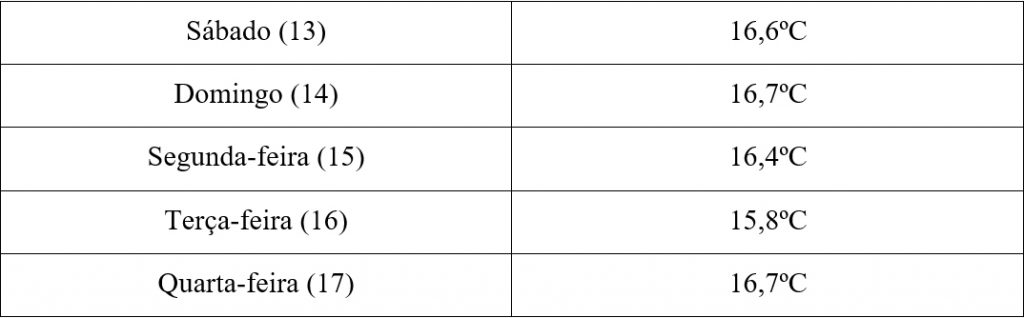 Confira as temperaturas mínimas registradas em Barbalha essa semana: