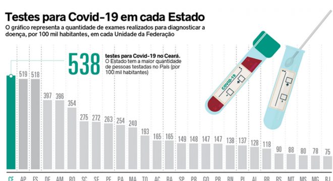 O ranking das Unidades da Federação foi feito com base em informações do Instituto Brasileiro de Geografia e Estatística (IBGE) e das secretarias estaduais de Saúde. Depois do Ceará, Amapá e Espírito Santo são os que mais testam