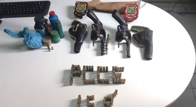 No momento em que os agentes chegaram ao local da ocorrência, de imediato o amigo do acusado foi detido por posse ilegal de arma, já que estava em seu poder um revolver calibre 38. O denunciado em primeiro instante foi encontrado, contudo, buscas em sua propriedade permitiram achar documentos comprovando a sua identidade, além de armas, munição para calibre 32 e 38, pólvora, frascos de chumbo e uma espingarda artesanal. No local estiveram os inspetores Júnior Pernambucano, Joermeson Rambo e Alberge. E o procedimento foi feito pelo delegado Vicente de Paula Rodrigues Coelho.