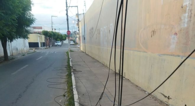 Fios soltos causam acidentes em Icó; os equipamentos pertencem à operadoras de telefonia que atuam na cidade