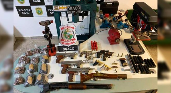 Entre as apreensões, destaca-se uma ofensiva realizada pela Delegacia de Repressão às Ações Criminosas Organizadas (Draco), da Polícia Civil, que resultou na desarticulação de um grupo responsável diretamente pelo armazenamento, manutenção e preparação de armamentos utilizados por suspeitos de crimes, que atuam na Grande Messejana (AIS 3), em Fortaleza. Foram apreendidas 11 armas de fogo, munições, centenas de projéteis e diversos utensílios para manutenção e fabricação de armas de fogo.