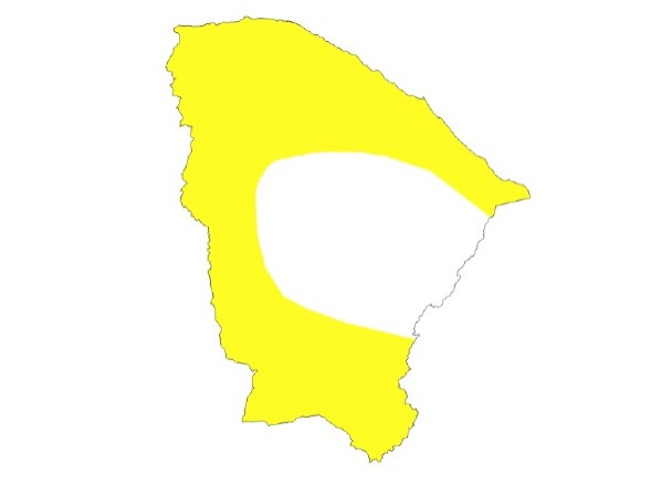 Áreas em amarelo estão com risco potencial de chuvas intensas Foto: Reprodução Funceme