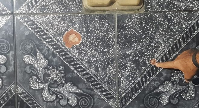 Marcas de tiros disparados contra a vítima, em Maracanaú. - Foto: Rafaela Duarte