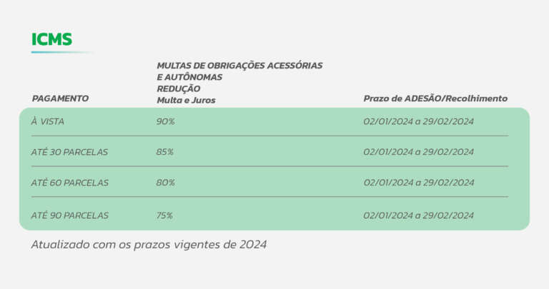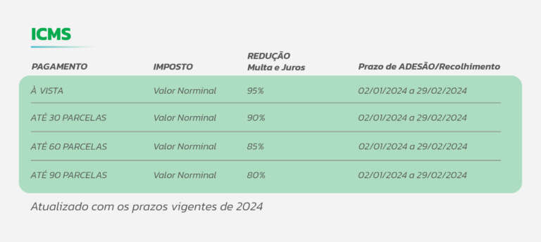 De acordo com a Secretaria da Fazenda do Estado (Sefaz-CE) são oferecidos descontos de até 95% para o ICMS, de 60% para o IPVA e 50% para o ITCD, sobre débitos inscritos, ou não, em Dívida Ativa, ajuizados ou não, e com fatos geradores ocorridos até 31 de dezembro de 2022.