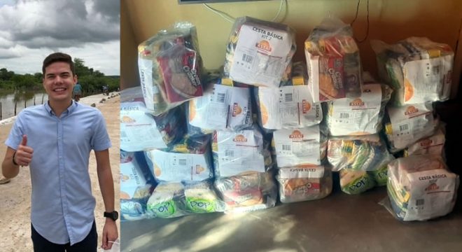 O vereador Evandro Filho, do PDT de Icó, continua com sua maratona desde o último mês de março, entregando cestas básicas às famílias vulneráveis em meio a pandemia.