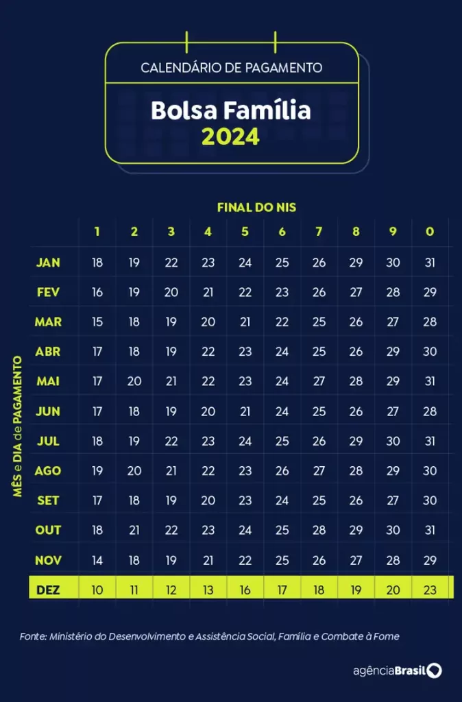 A Caixa Econômica Federal inicia nesta quinta-feira (19) o pagamento da parcela de dezembro do Bolsa Família aos beneficiários com Número de Inscrição Social (NIS) final 8. Segundo o Ministério do Desenvolvimento e Assistência Social, neste mês, o programa de transferência de renda do Governo Federal alcançará 20,81 milhões de famílias, com um total de R$ 14,07 bilhões em gastos.