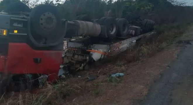 Sete animais morrem atropelados e caminhão tomba na BR-135