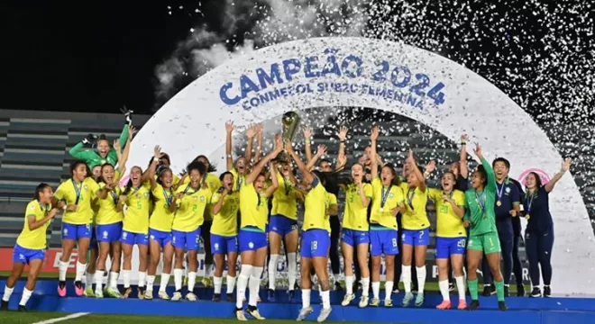 A Seleção Feminina Sub-20 conquistou o Sul-Americano 2024 na madrugada desta segunda-feira (6), após vencer o Peru por 2 a 0. A partida que definiu o título aconteceu no Estádio Modelo Alberto Spencer, em Guayaquil (EQU) e foi na última rodada do hexagonal.