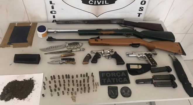 O cumprimento dos mandados de busca e prisão aconteceram nesta sexta-feira (21/02) e entre as armas, de diversos calibres, estava uma PT .40, de uso restrito.