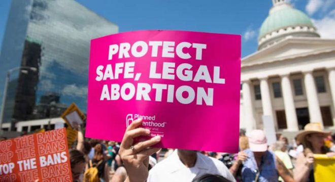Protestos de 2019 no Missouri pediam a legalização do aborto. O cartaz, como centenas de outros, exige o direito da mulher: "Proteja o aborto seguro e legal" (AFP/Getty Images)