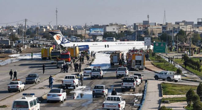Segundo a televisão estatal do Irã, o piloto “teria pousado tarde demais, perdendo a pista de pouso”. Um repórter a bordo do avião, no entanto, disse que uma das rodas traseiras do avião quebrou, obrigando o piloto a realizar um pouso “de barriga”.