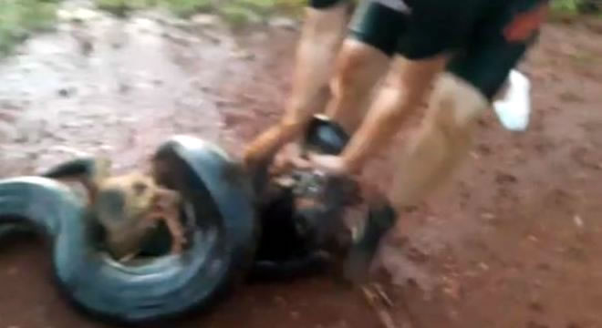 Nas imagens, é possível ver o momento do resgate e o cuidado que o trio teve para salvar o cachorro e não matar a cobra, que foi devolvida à natureza sem ferimentos.