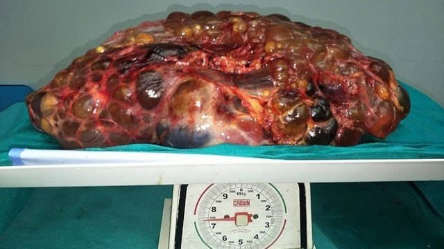 Rim de 7,4 quilos retirado de paciente indiano (Reprodução)