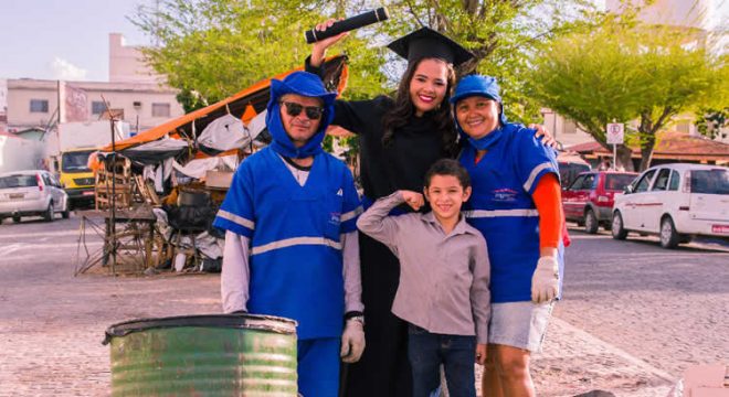 O ensaio de formatura de Vanessa dos Santos, de 18 anos, concludente dos ensinos médio e técnico em Quixadá, no Sertão Central, comoveu muitas pessoas nas redes sociais. Ela usou as fotos como homenagem a seus pais, que trabalham como garis no Centro da cidade.