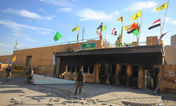 Forças de segurança iraquianas em frente à embaixada dos EUA na capital Bagdá (Ahmad Al-Rubaye/AFP)