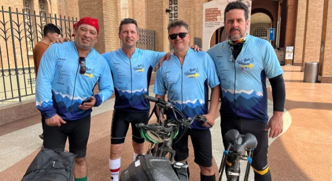 Um grupo formado por quatro amigos concluiu uma jornada de aproximadamente 180 quilômetros de bicicleta, de Santo André (SP) até o Santuário Nacional de Aparecida, no interior de São Paulo. A viagem chegou à sua terceira edição consecutiva.