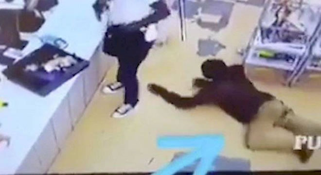 As câmeras de segurança de um mercado local da Shoprite Usave, em Johanesburgo, África do Sul, captaram imagens no mínimo curiosas. Nelas um assalto está em andamento.