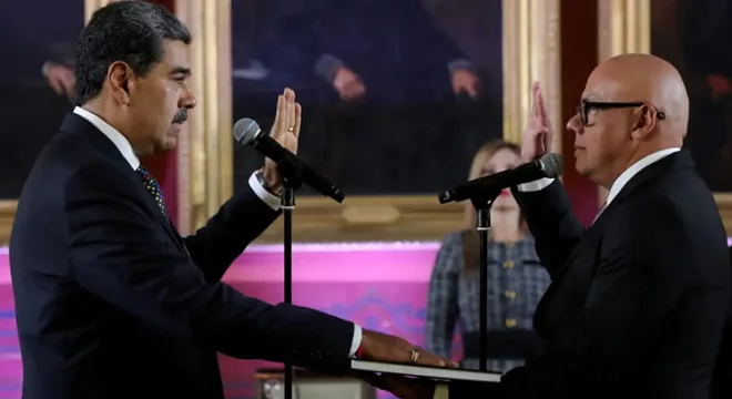 Em cerimônia realizada na Assembleia Nacional da Venezuela, em Caracas, nesta sexta-feira (10), o presidente Nicolás Maduro foi empossado para o terceiro mandato como chefe do Executivo do país, para o período de 2025 a 2031. No discurso, a liderança chavista destacou que não puderam impedir a posse, apesar da pressão internacional e dos protestos da oposição.