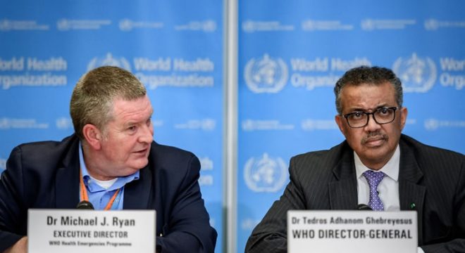 Na Suíça, o diretor executivo da OMS Michael J. Ryan e o diretor-geral da organização, Tedros Adhanom atualizaram a situação do coronavírus no mundo (AFP)