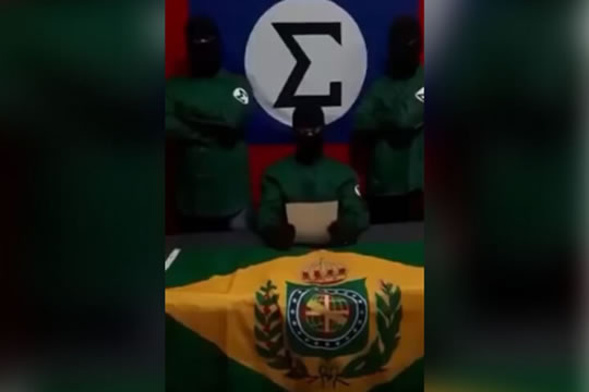 O Comando de Insurgência Popular Nacionalista da Família Integralista Brasileira, suposto grupo integralista, disse ter atacado prédio de produtora na Zona Sul do Rio (Reprodução)