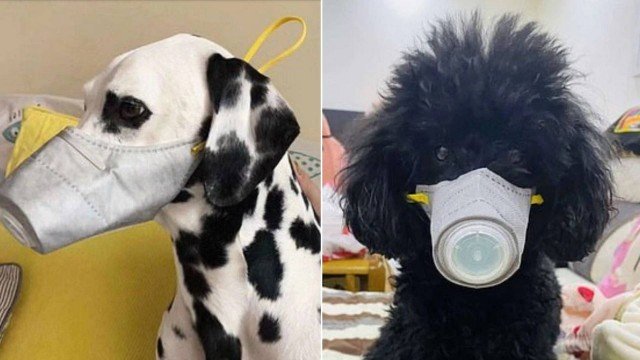 Cães com máscara para se protegerem do coronavírus (Reprodução)